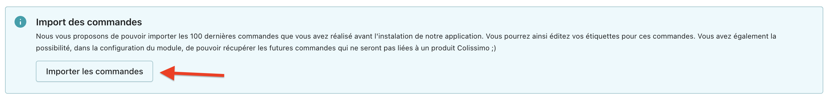 Nous vous proposons de pouvoir importer les 100 dernières commandes que vous avez réalisé avant l'instalation de notre application. Vous pourrez ainsi éditez vos étiquettes pour ces commandes.