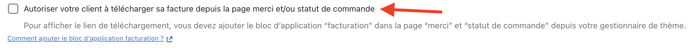 - Pour autoriser vos clients à télécharger les factures, vous devez cocher la case suivante et suivre le tuto ci-dessous :